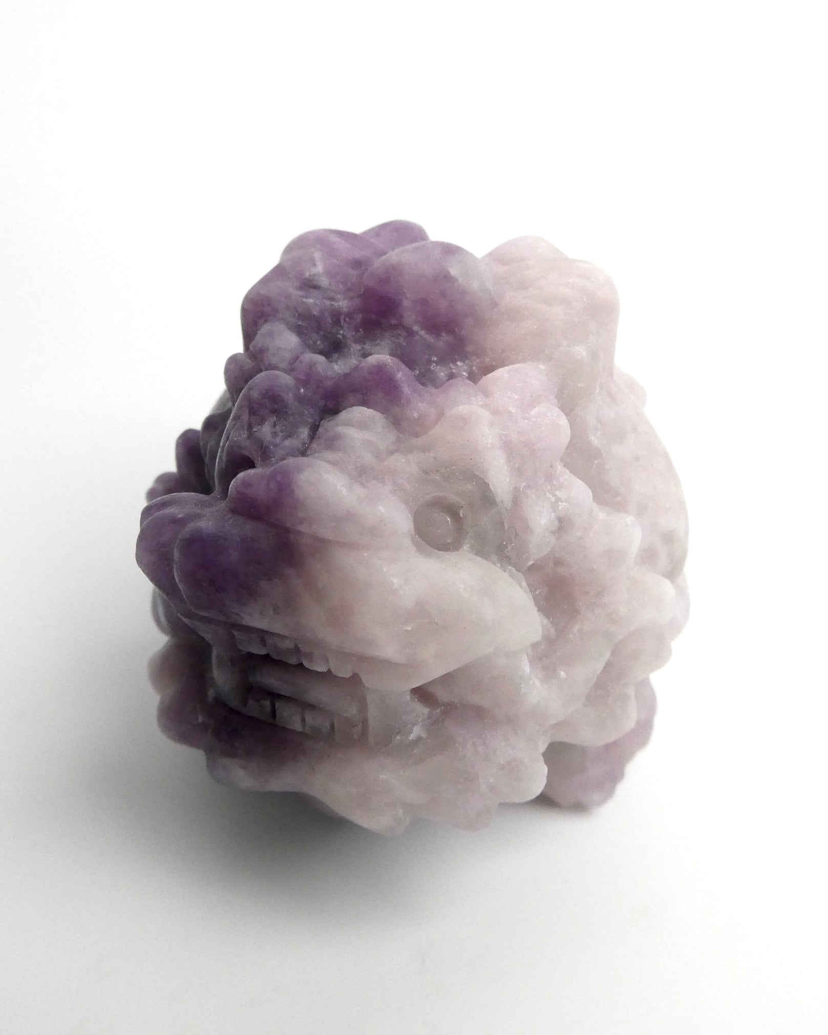 優しく、そして力強い存在感を放つ、ユニコーンストーンの龍亀カービング。この石が持つ淡いパープルやピンク、そして落ち着いたグレーの色合いは、まるで夢の中にいるかのような幻想的な美しさです。