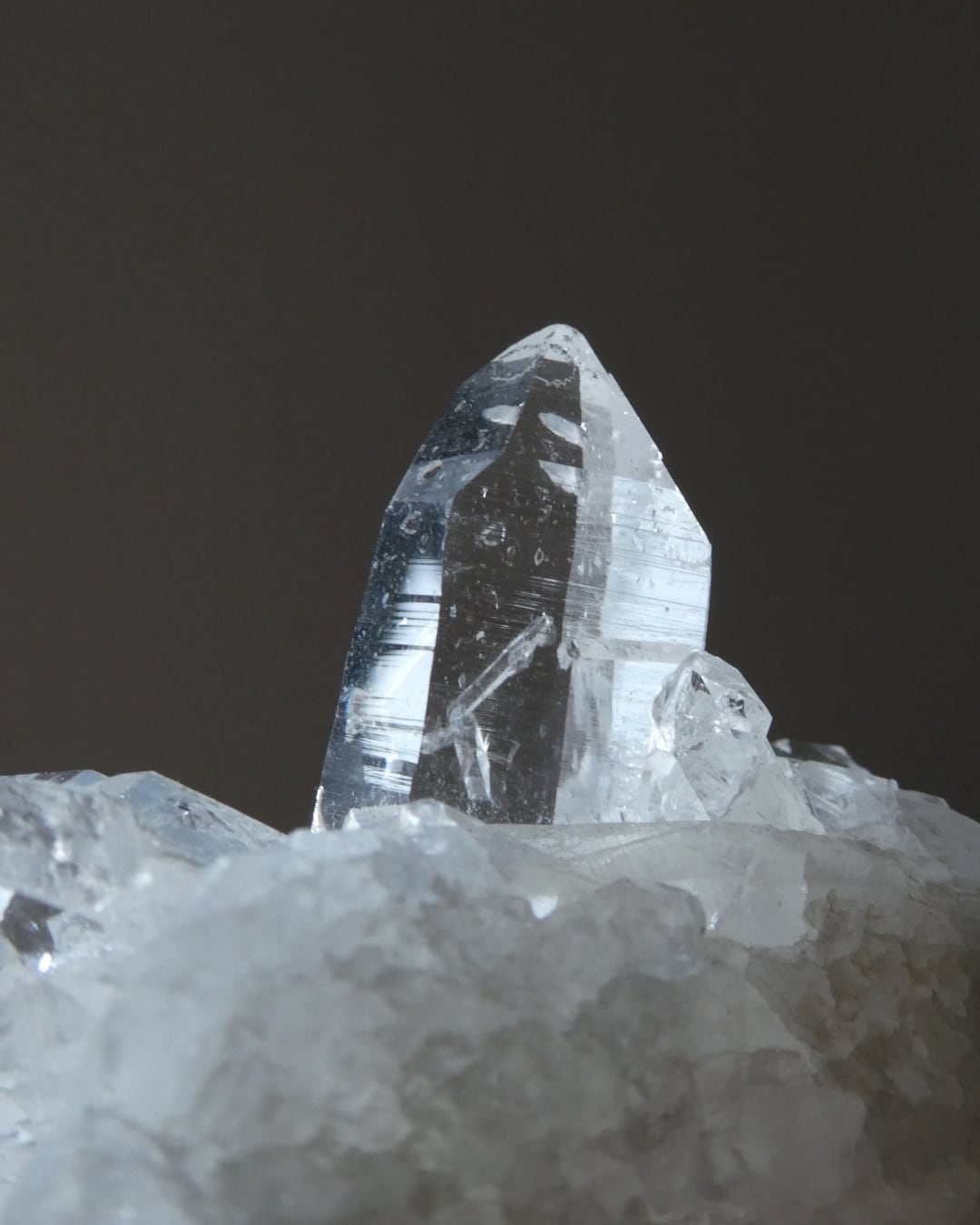 コロンビア産レムリアン水晶は、まるで氷の彫刻のような圧倒的な透明度と、