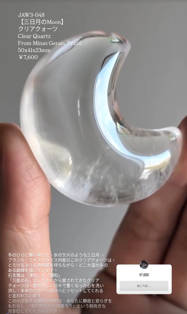 JAW3-048 【三日月のMoon】 クリアクォーツ Clear Quartz From Minas Gerais, Brazil 50x41x23mm ¥7,600