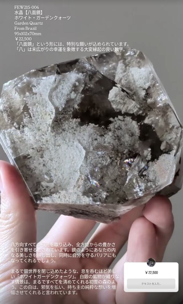 FEW215-004 水晶【八面鏡】 ホワイト·ガーデンクォーツ Garden Quartz From Brazil 95x102×70mm ¥22,500