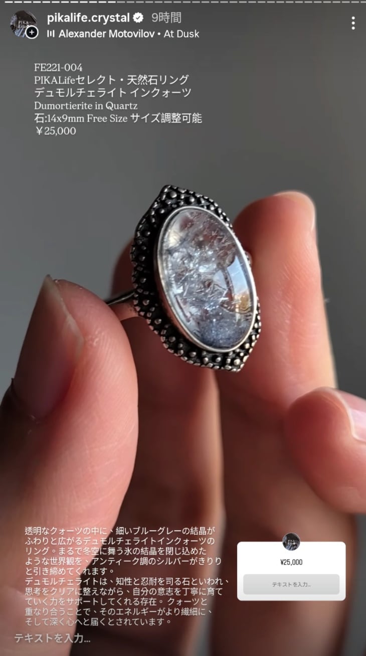 FE221-004 PIKALifeセレクト·天然石リング デュモルチェライトインクォーツ Dumortierite in Quartz 石:14x9mm Free Size サイズ調整可能 ¥25,000