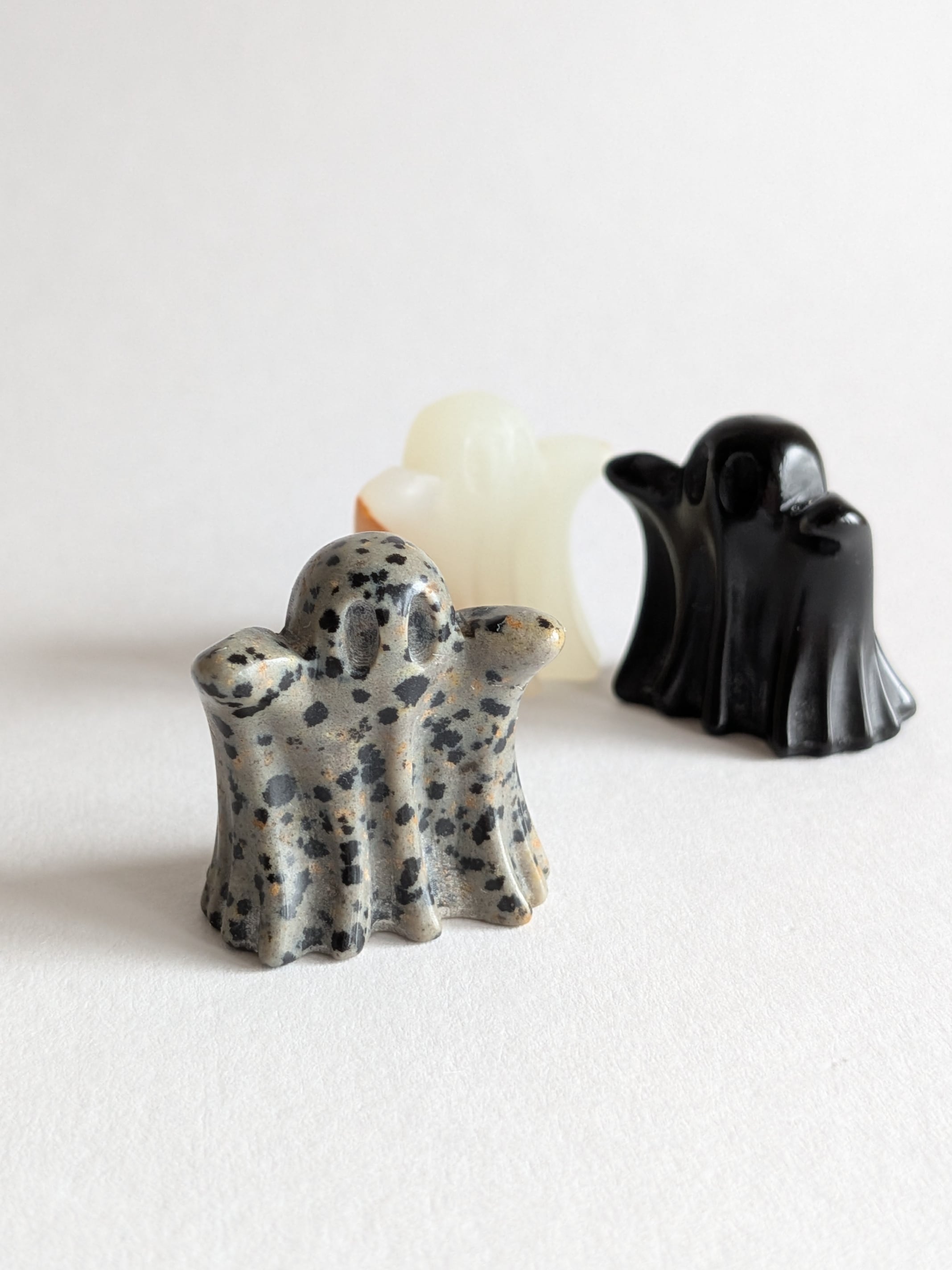 Dalmation Jasper・Agate・Black Obsidian ダルメシアンジャスパー・アゲート・ブラックオブシディアン ⭓ 可愛いお化け3兄弟 ⭔ CARVING