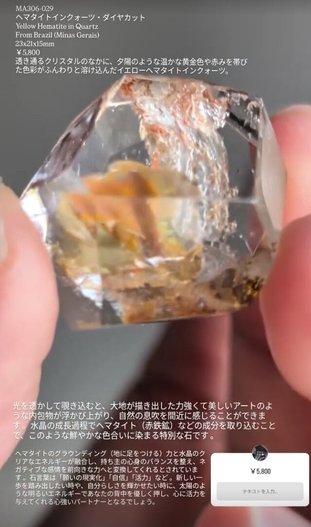 た色彩がふんわりと溶け込んだイエローヘマタイトインクォーツ。