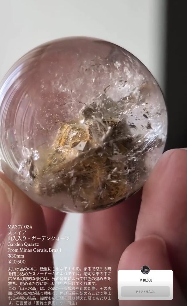 MA307-024 スフィア 山入入り·ガーデンクォーツ Garden Quartz From Minas Gerais, Brazil Φ30mm ¥10,500