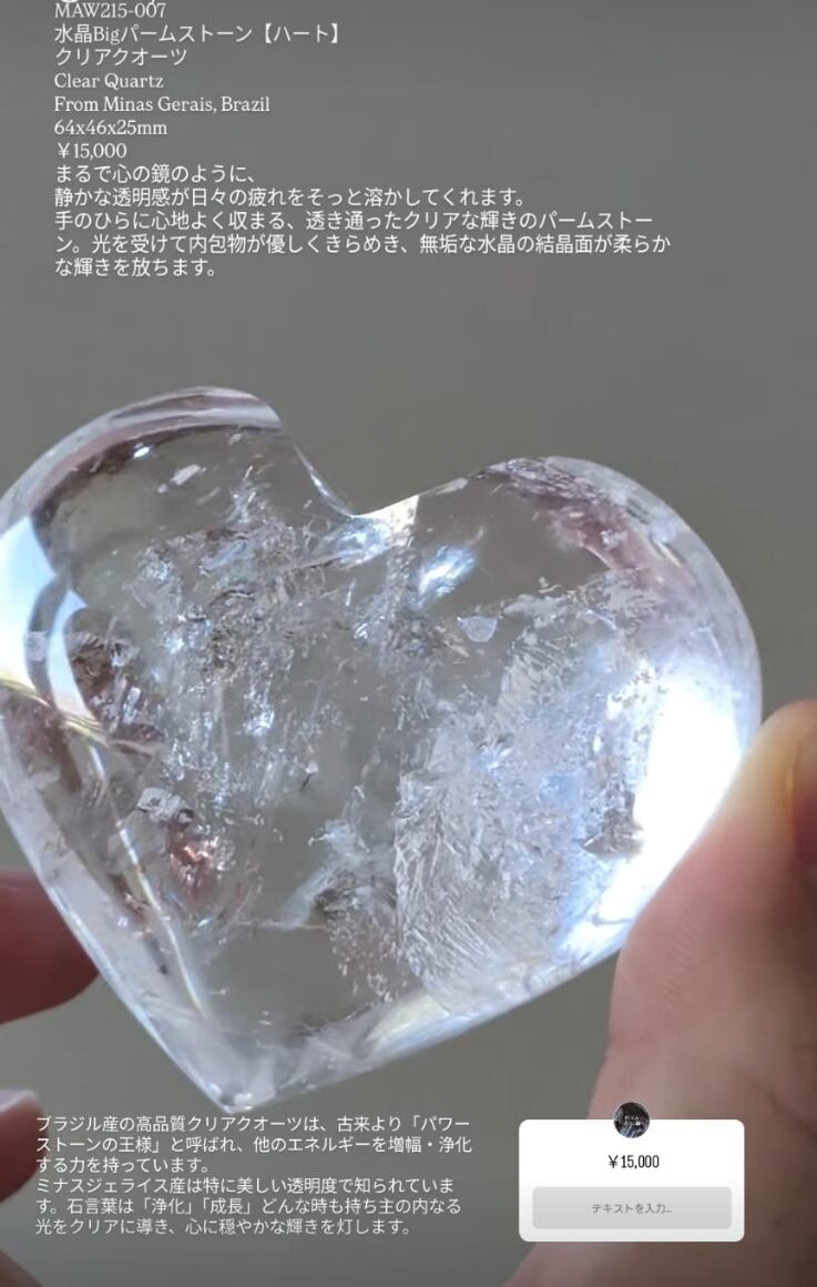 水晶Bigパームストーン【ハート】