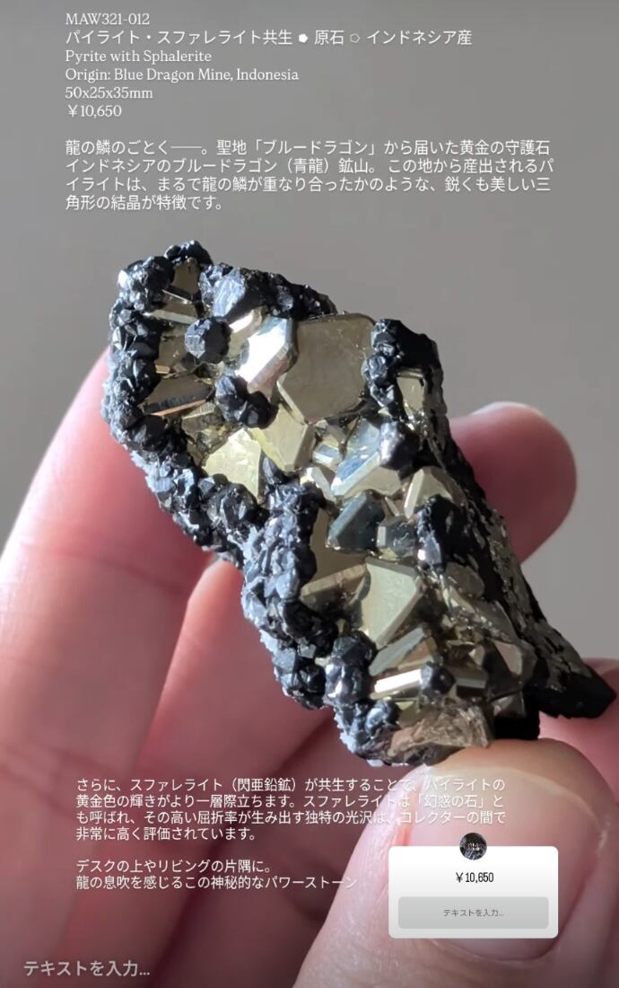 MAW321-012 パイライト·スファレライト共生●原石○インドネシア産 Pyrite with Sphalerite Origin: Blue Dragon Mine, Indonesia 50x25x35mm ¥10,650