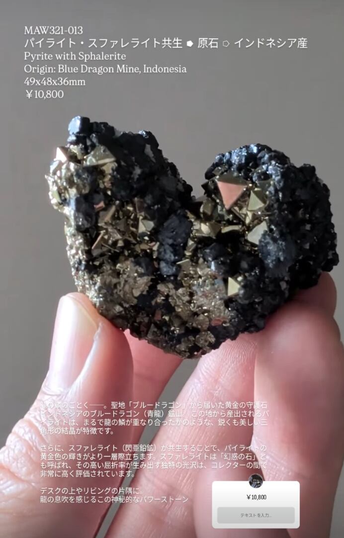 MAW321-013 パイライト·スファレライト共生●原石○インドネシア産 Pyrite with Sphalerite Origin: Blue Dragon Mine, Indonesia 49x48x36mm ¥10,800
